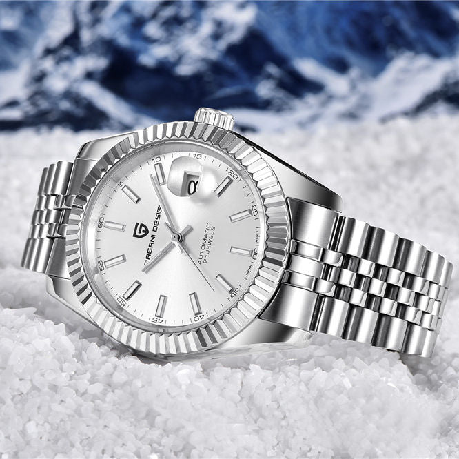 Alliez performance mécanique et élégance intemporelle avec la PAGANI DESIGN – Montre Homme Automatique. Conçue pour les hommes modernes, elle arbore un bracelet Jubilé raffiné, un boîtier en acier poli, et un mouvement automatique japonais fiable.