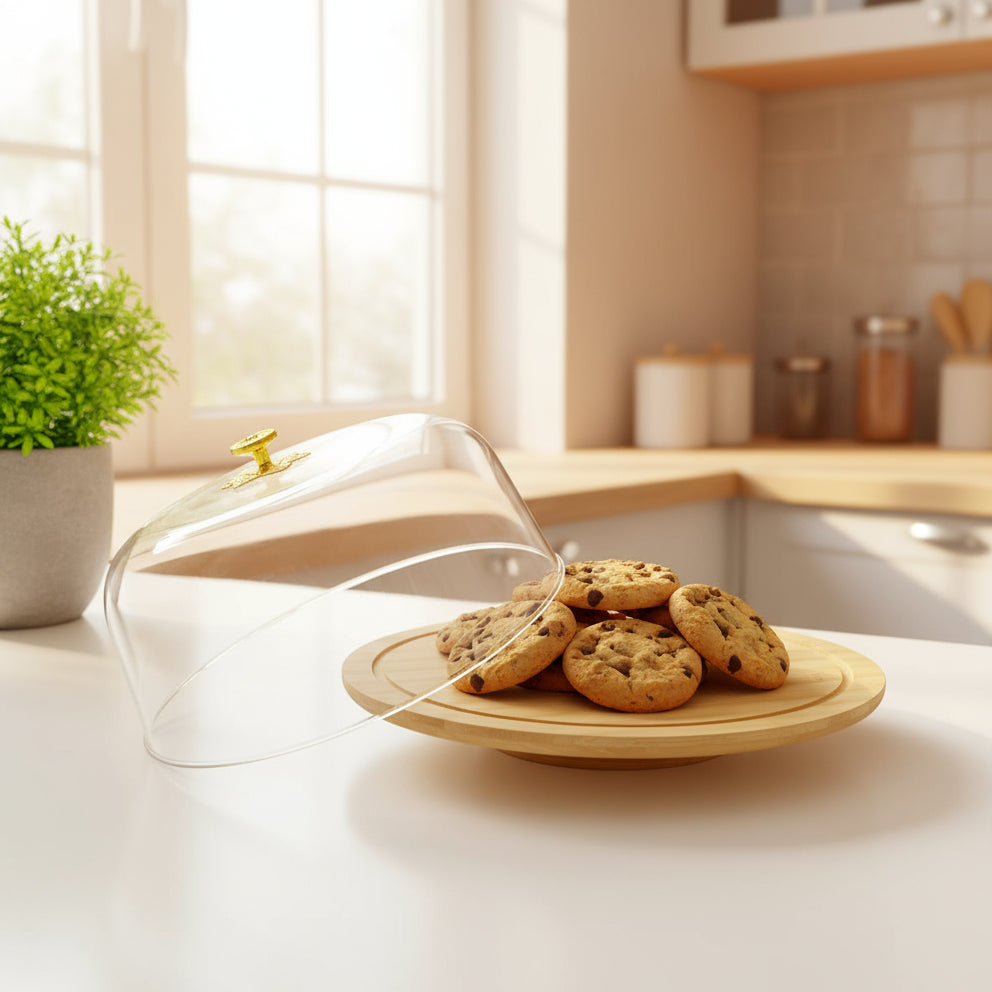Sublimez vos présentations avec la cloche à gâteau Inttox 🍰. Combinant une base en bambou naturel 🪵 et une couvercle transparent avec poignée dorée ✨, elle apporte une touche chic et chaleureuse à votre table.
