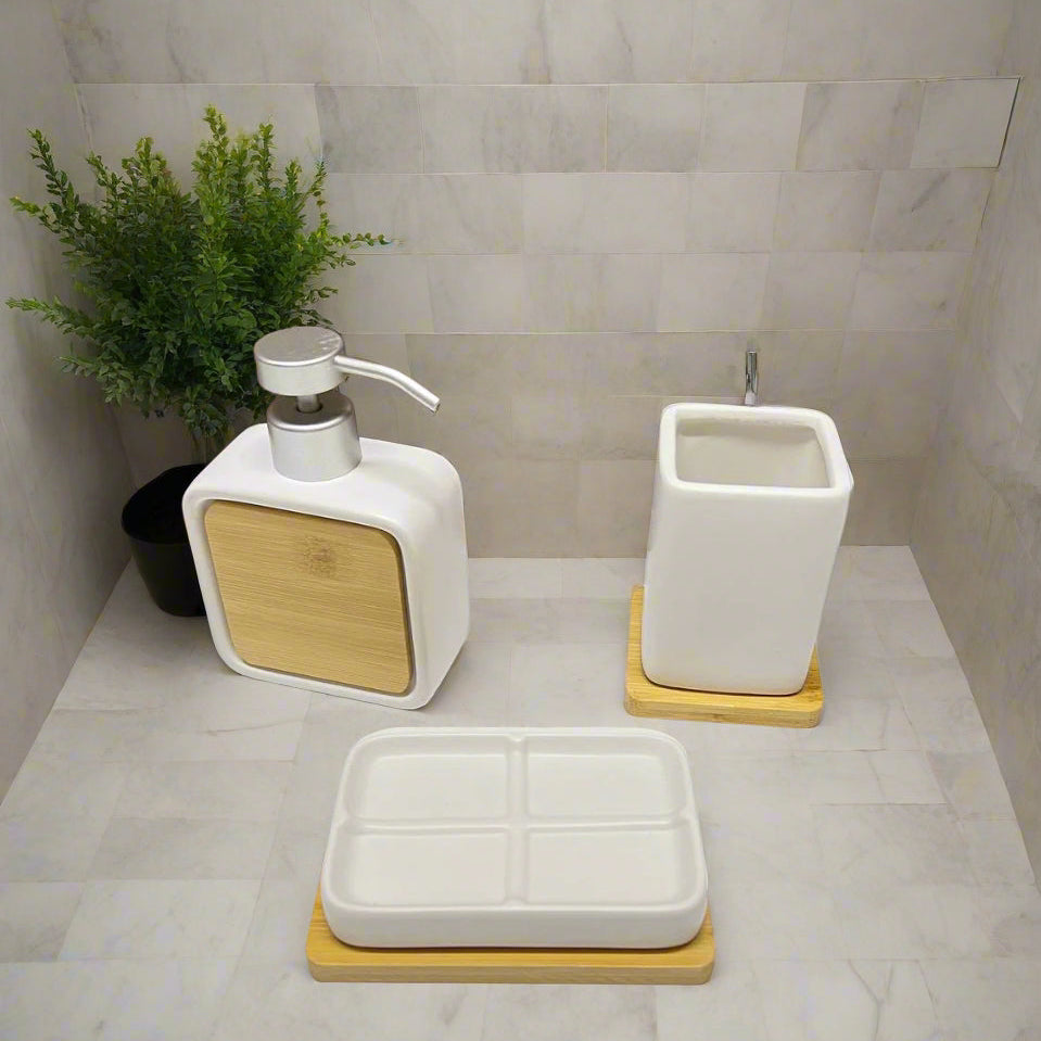 Inttox-🛁 Ensemble d'Accessoires de Salle de Bain en Résine - Texture Bambou (3 Pièces) 🌿✨