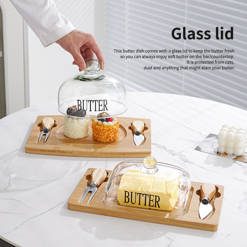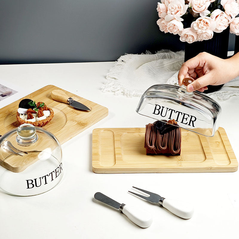 Inttox-Dôme pour Beurre / Fromage avec Planche à Découper & Couteau Intégré