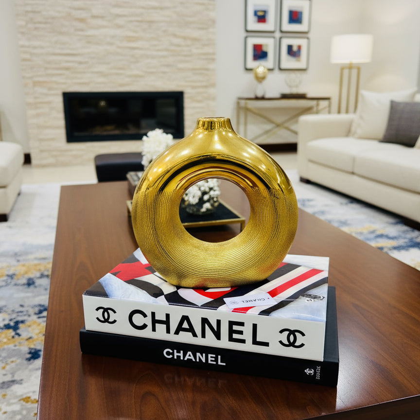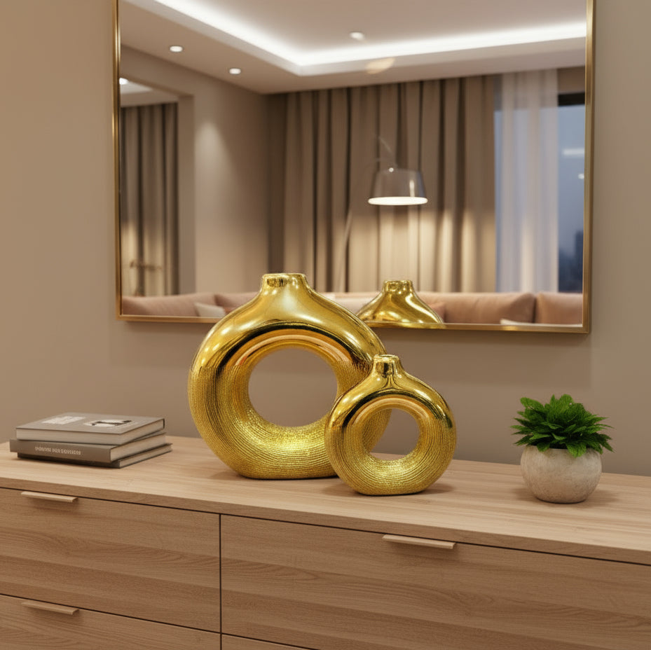 Sublimez votre intérieur avec ce duo de vases décoratifs Inttox au design circulaire contemporain et à la finition dorée éclatante .