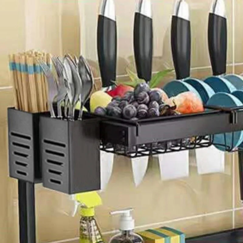 Simplifiez le rangement et l’organisation de votre cuisine avec ce vaccage de vaisselle au-dessus de l'évier T1. Conçu pour maximiser l’espace de votre comptoir, ce grand organisateur extensible est idéal pour sécher la vaisselle et organiser les ustensiles, tout en gardant votre espace propre et ordonné.