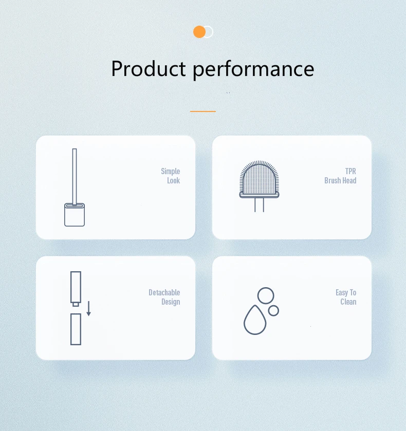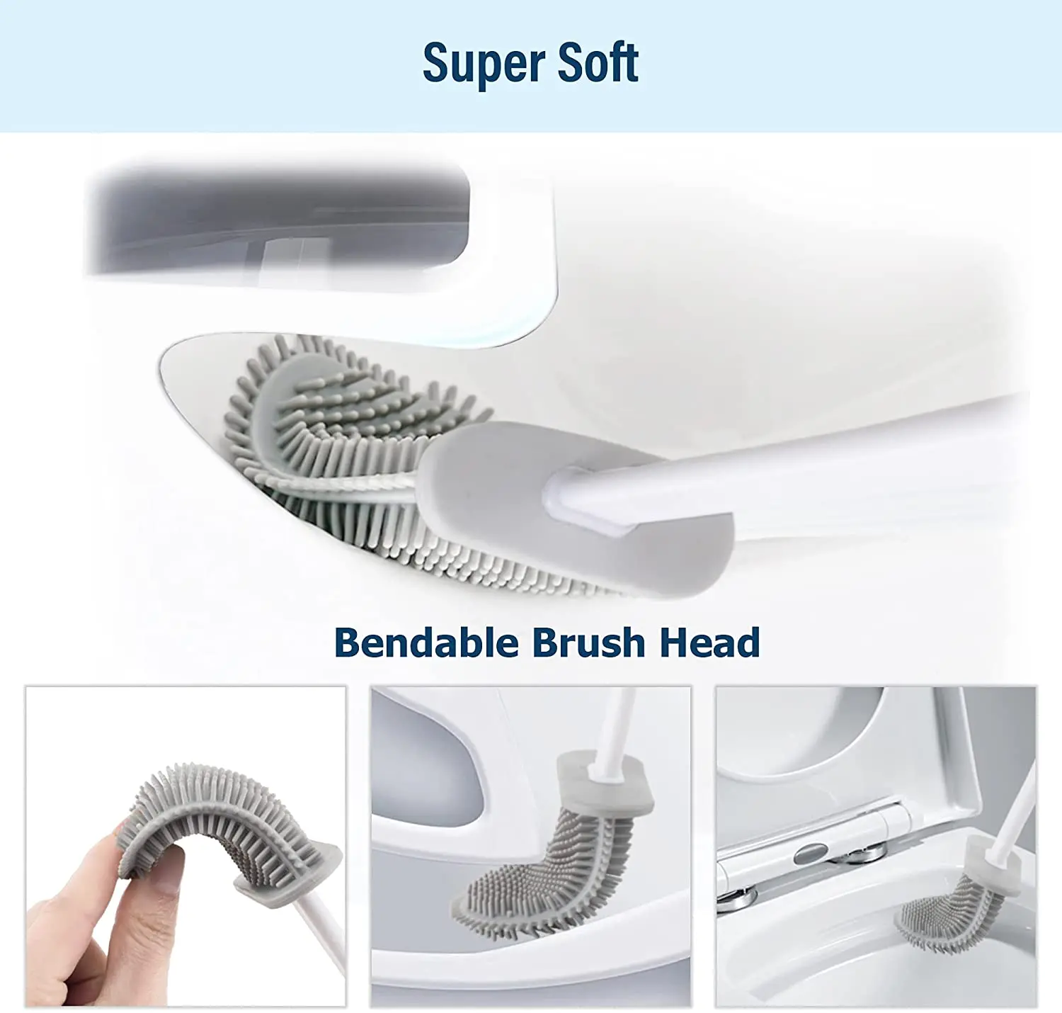 Brosse en Silicone : La brosse en silicone est conçue pour éliminer efficacement les taches et les résidus, tout en étant douce sur la surface de la cuvette.
