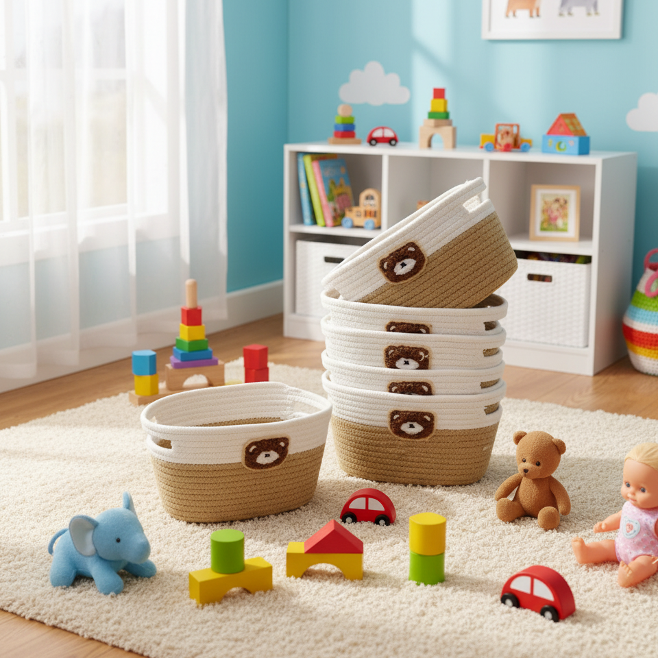 L’Organisateur de Jouets Inttox est un panier moderne et mignon conçu pour apporter ordre et douceur dans la chambre des enfants . Tissé à la main en corde de coton naturelle, il allie style, praticité et sécurité. Grâce à ses poignées solides, il se déplace facilement, tout en offrant une solution élégante pour ranger jouets, peluches, livres ou petits accessoires.