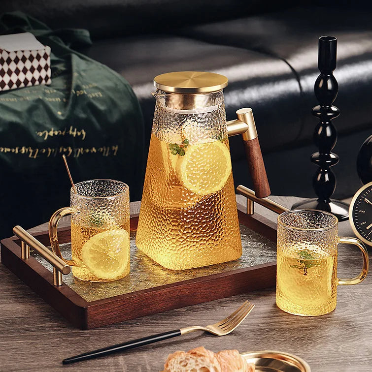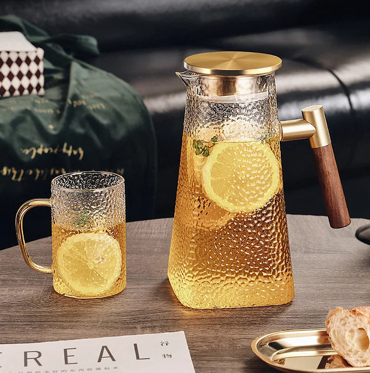 Description du produit : Apportez une touche d'élégance et de praticité à votre table avec ce pichet en verre borosilicaté de haute qualité. Doté d'une poignée en laiton robuste et d'un couvercle hermétique, ce pichet est parfait pour servir des boissons chaudes ou froides, qu'il s'agisse de thé glacé, de jus de fruits, ou d'eau infusée. Son design moderne et polyvalent s'adapte parfaitement à toutes les occasions, que ce soit pour un dîner élégant ou une utilisation quotidienne.