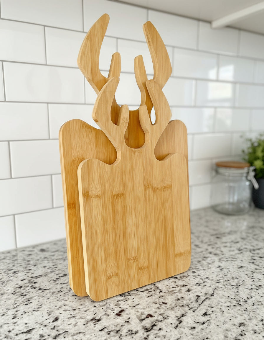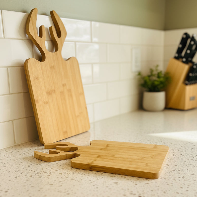 Apportez une touche nature et élégante à votre cuisine avec la planche à découper Inttox en bambou naturel 🌿. Son design unique en forme de tête de cerf 🦌 allie originalité et fonctionnalité, parfait pour couper, présenter ou décorer votre espace culinaire 🍞🧀.