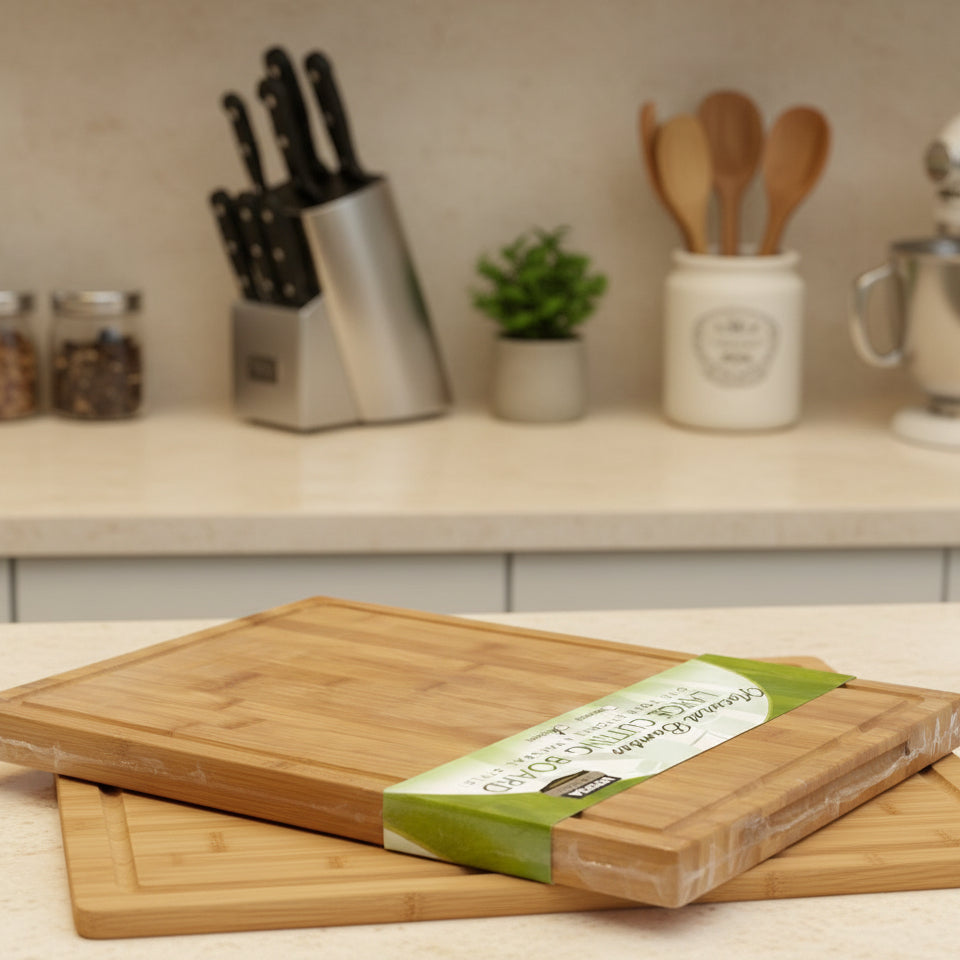 Découvrez la planche à découper en bambou organique extra large, idéale pour les cuisines modernes et les professionnels exigeants. Fabriquée en bambou 100 % naturel, elle est conçue pour hacher, trancher et préparer viandes, légumes, fruits, pains et fromages en toute sécurité.