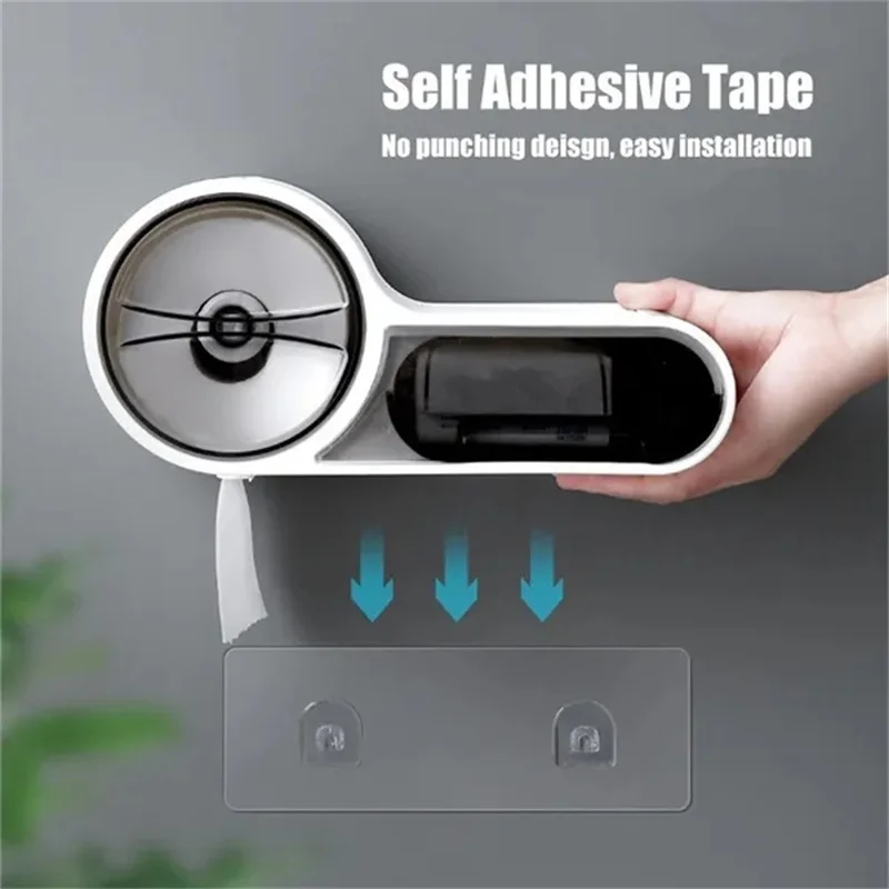 Support de papier étanche, conception en zigzag pour une découpe facile du papier, rouleau de papier détachable, grand espace de rangement d’essuie-tout, peut accueillir différentes spécifications de rouleau de papier et est équipé d’un conteneur de rangement de sacs à ordures