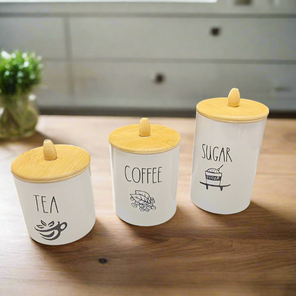 🍶 Lot de 3 contenants : Tea – Coffee – Sugar