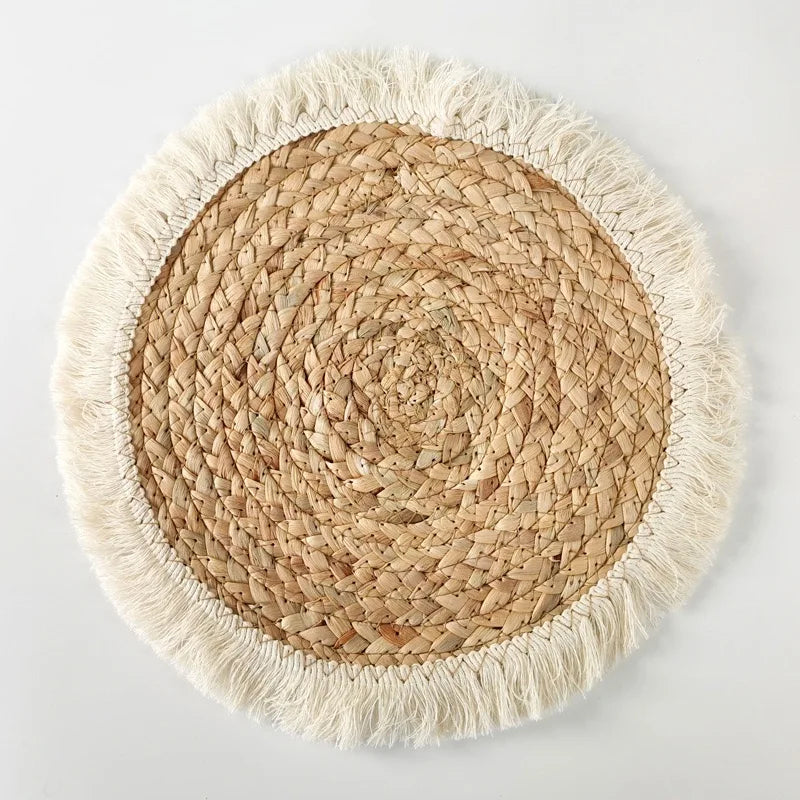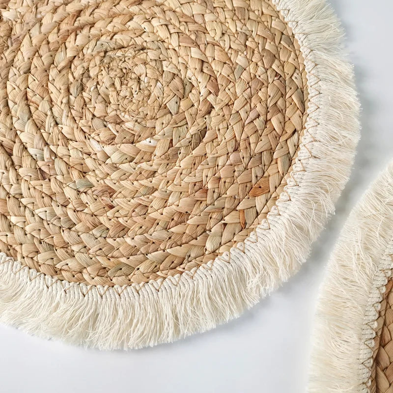 ✅ Matériau Écologique : Fabriqué en herbe de courge durable, 100% naturelle et respectueuse de l'environnement. ✅ Design Élégant : Orné de pompons pour une finition unique et charmante. ✅ Polyvalence : Convient comme napperons pour assiettes ou dessous de verre pour protéger les surfaces des boissons chaudes ou froides. ✅ Durabilité : Résistant à la chaleur et facile à nettoyer avec un chiffon humide. ✅ Fait à la Main : Chaque pièce est unique grâce à un savoir-faire artisanal minutieux.
