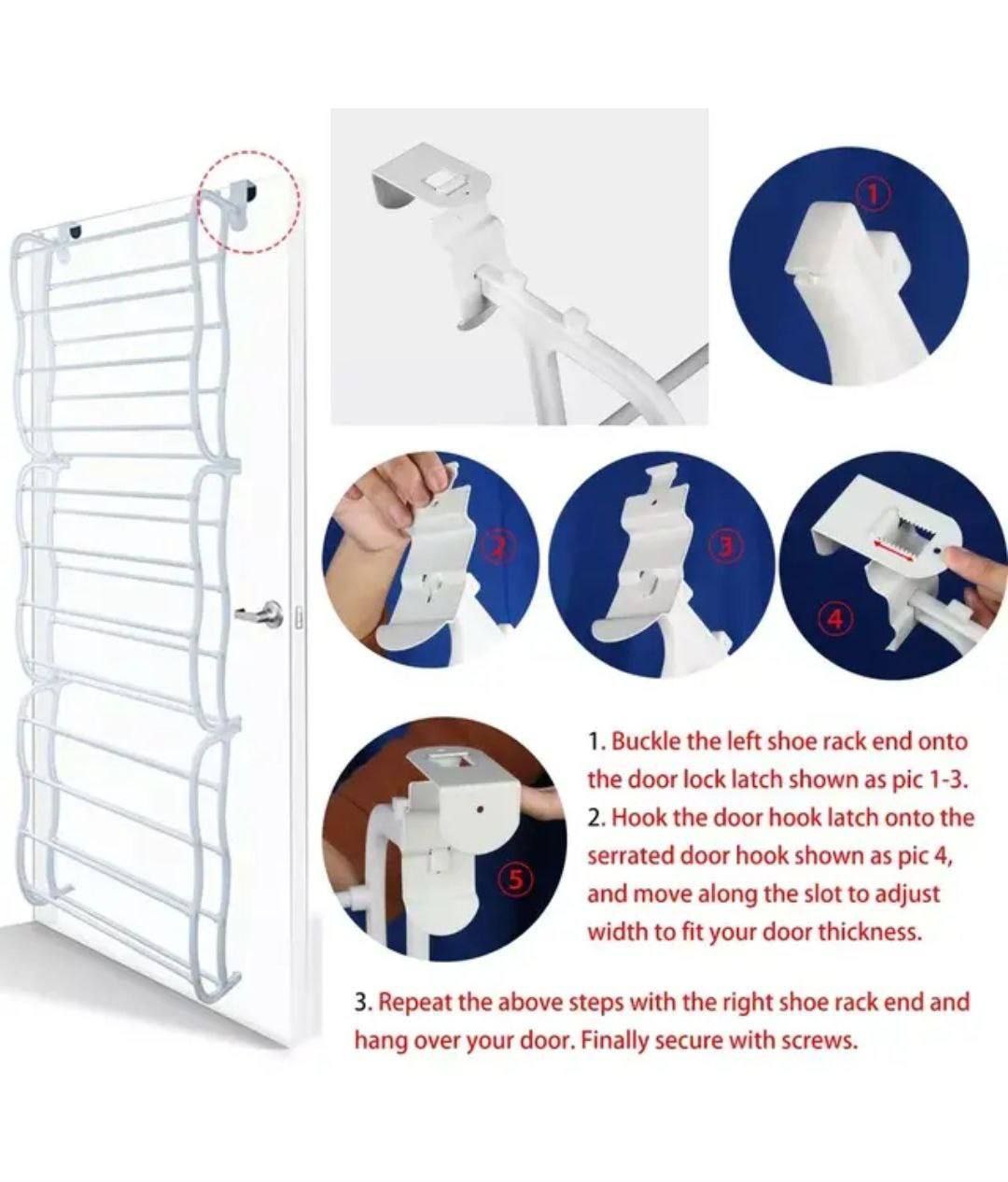 - Facile à assembler sans avoir besoin d’outils. Le porte-chaussures au-dessus de la porte offre un espace de rangement simple pouvant accueillir jusqu’à 24 paires de chaussures. Un moyen abordable d’organiser votre collection de chaussures. Depuis plus de 70 ans, Whitmore ramène l’organisation à la maison. Si vous avez des questions ou des problèmes, veuillez nous contacter pour une assistance immédiate